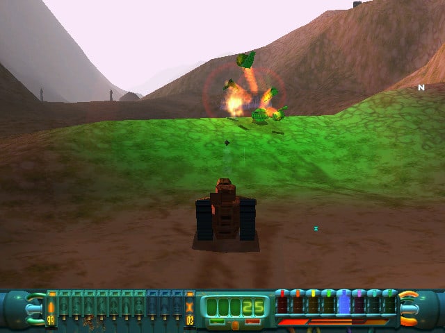 В арсенале персонажа предусмотрено 12 видов вооружения на все случаи жизни. Пушки, пулеметы, ракетницы, снаряды, которые можно телепортировать, магниты, мины и другое. Количество жизней – бесконечное, игрок может возрождаться вновь в определенных точках и продолжать прохождение миссии. Очень удобной фишкой является возможность отметить место гибели желтым флажком, чтобы потом приехать в указанную точку и подобрать свои трофеи. А вот шкала здоровья постепенно опустошается. Чтобы восполнить запас, можно поискать символические аптечки на картах или подобрать бонусы от убийства врагов. Можно даже вызвать на подмогу вертолет. А для поиска драгкамней используется специальный радар, который показывает местоположение кристалла на мини-карте. Временных рамок на исследование локации – нет, поэтому можно кататься на танке в свое удовольствие, испытывая навыки вождения и управления гусеницами.